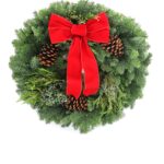 26″ Diameter Noble Fir, Western Red Cedar, Incense Cedar, faux Canella berries, white tip pinecones, cinnamon sticks.